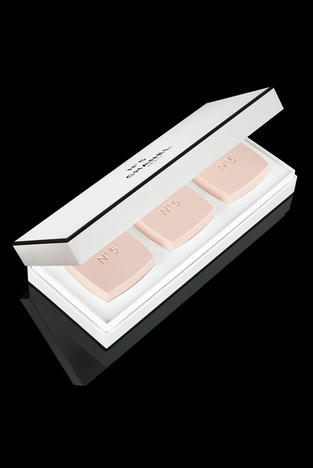 E per finire, guardate che meraviglia questo cofanetto! Racchiude tre saponi profumati, un regalo di Natale molto raffinato e di grande effetto. Il costo è di 40 Euro e la fragranza delle 3 saponette è naturalmente Chanel n. 5!