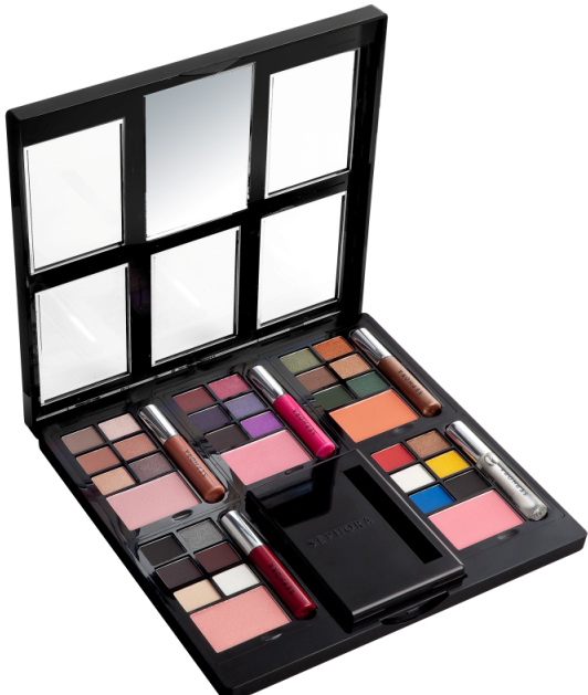 Sephora Collector Bag Makeup Palette contiene al suo interno ben 183 colori! distribuiti fra ombretti, blush e gloss. Troviamo inoltre uno specchio centrale, mini-matite e pennellini, insomma tutto il necessaire per avere sempre un makeup a prova di qualsiasi evento. Trovo che sia adatta anche ad una ragazza che magari è alle prime armi con il trucco, e desidera possedere tutti gli strumenti e una vastissima gamma di colori in un’unica soluzione. Il packaging è davvero funzionale, e il motivo a righe bianche e nere è perfetto da abbinare alla borsa di Sephora, sempre nella stessa fantasia. Il costo è di Euro 39,90.