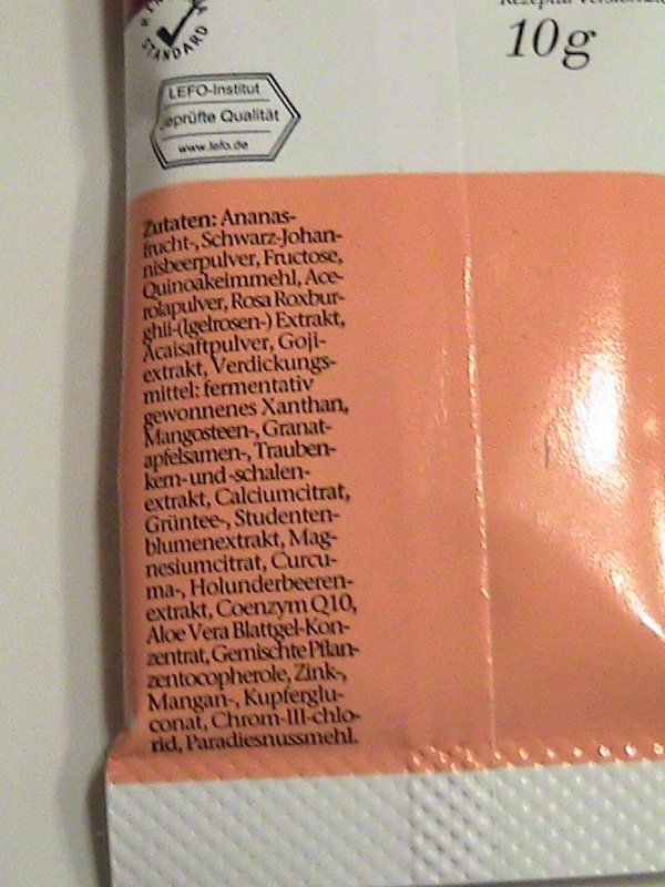 Arriveranno a casa vostra alcune bustine sciolte, in modo che possiate provarle per qualche giorno, così da farvi un’idea su questi fantastici prodotti. Vi ricordo che si tratta di integratori naturali al 100%, e nello specifico il tipo “Antiox” è indicato per prevenire l’invecchiamento e rinforzare le difese naturali del vostro corpo. Vi allego anche l’Inci completo: