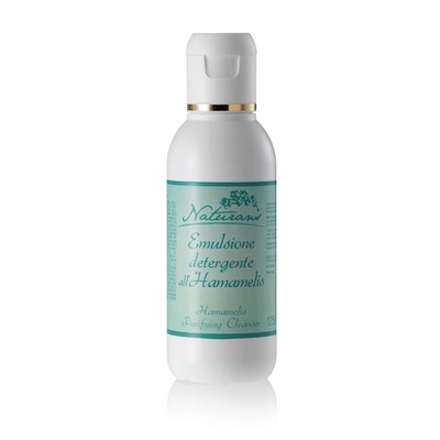 Emulsione detergente all’hamamelis: è un latte detergente indicato per pelli sensibili, acneiche e con couperose. Fra i principi attivi troviamo l’hamamelis, con proprietà antinfiammatorie, il mirtillo per contrastare la couperose, l’achillea per lenire la pelle sensibile e arrossata, il limone con proprietà sebo-equilibranti, la camomilla, che oltre a svolgere un’azione calmante, è anche antiossidante e antiradicali liberi, il mirto, che svolge un’azione tonificante e lenitiva.