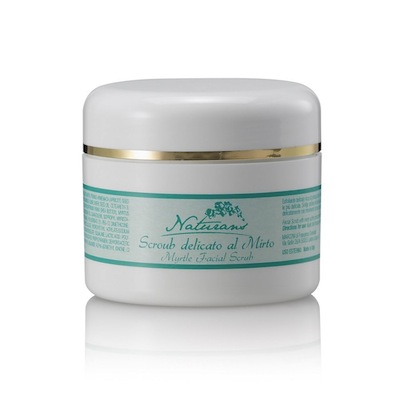 Scrub delicato al mirto: appena aperto il barattolo, sono stata subito colpita dalla sua texture particolare. E’ una crema vellutata di colore verde, e al suo interno ci sono dei granellini finissimi, che servono appunto per esfoliare la pelle del viso. Mi ha incuriosita, nel senso che prima d’ora non avevo mai provato uno scrub viso dalla consistenza così vellutata: i granelli infatti sono fra i più fini che mi sia capitato di vedere, ricordano molto la sabbia del mare. L’effetto sul viso è quindi iper-delicato e per nulla aggressivo. Devo dire che lo scrub al viso è una pratica che non ho mai amato particolarmente fare, ma con questo diventa quasi piacevole, e infatti lo sto utilizzando regolarmente ogni settimana. Ha un profumo rilassante che riporta agli ambienti tipici delle Spa e fra gli ingredienti troviamo: mirto, alghe marine, argilla e olio di mandorle. E’ adatto a tutti i tipi di pelli, in particolare per quelle sensibili, acneiche o con couperose. Va applicato in modo uniforme sul viso, evitando il contorno occhi, e si massaggia per un minuto risciacquando poi con acqua tiepida. Il vasetto contiene 50ml di prodotto per un costo di 14 Euro.