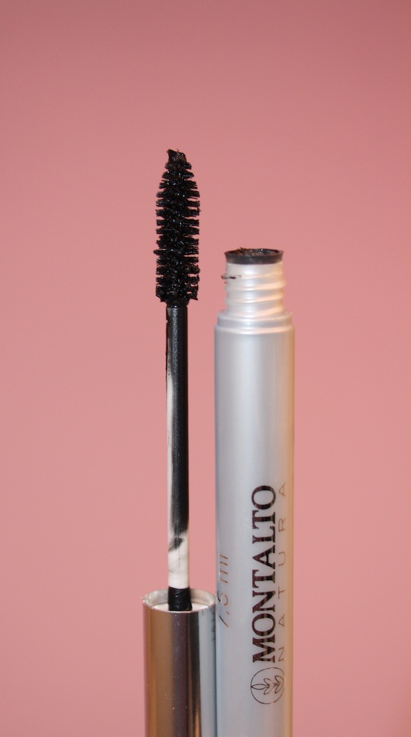 è di colore nero e formulato con carbone vegetale, ossido di ferro, burro di cupuacu e piantaggine. Inoltre è gradevolmente profumato con olio essenziale di rosa. Poiché completamente naturale, non è resistente all’acqua. L’effetto di questo mascara è sia infoltente che allungante, e lo si nota dalla forma dello scovolino, nè troppo grossa, nè troppo sottile. Lo spazzolino termina a cono, per raggiungere anche le ciglia ai lati dell’occhio. Io preferisco utilizzarlo durante il giorno, perché dona un look sobrio ed elegante. Ho notato che ha un buon effetto infoltente, ma sempre con un finish estremamente naturale. Inoltre non secca le ciglia, ma al contrario vi rimarranno morbide ed elastiche. E’ indicato anche per gli occhi iper sensibili.