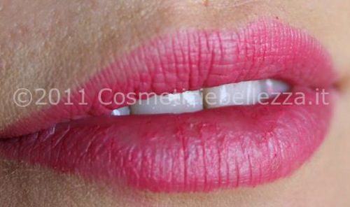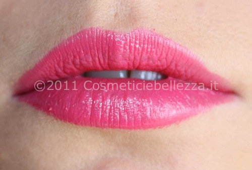 Non ho sentito la necessità di applicare prima una matita per il contorno labbra, perché con questo rossetto il problema di sbavature è ridotto al minimo, grazie alla particolare texture non scivolosa, che, già alla prima passata, regala un colore pieno ed intenso.