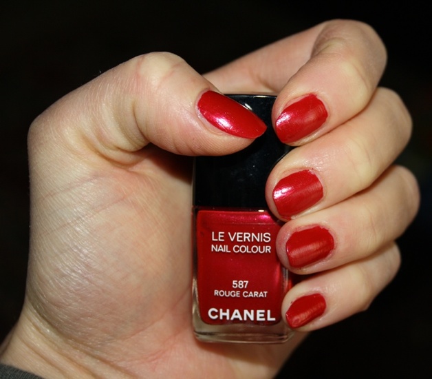 Nel video sopra, potete ammirare dal vivo il bellissimo smalto Chanel n. 587 Rouge Carat (Euro 21,00), che fa parte della collezione Les Scintilles. E’ un color ciliegia, con una miriade di brillantini fucsia e dorati. E’ un rosso che oltre ad essere elegante, ha anche quella nota in più di vivacità, che lo rende particolarmente adatto da sfoggiare in questo periodo di festa.