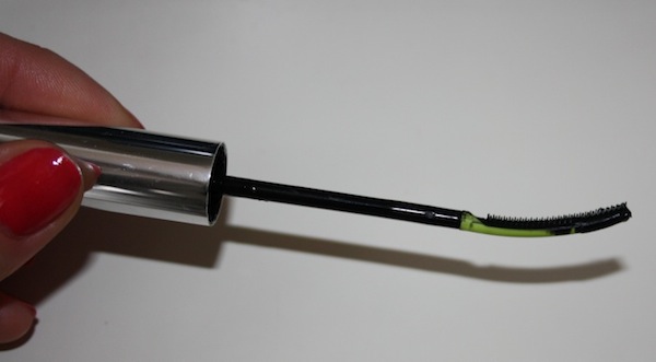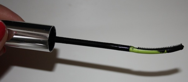 La parte colorata di verde acido sulla curva, resta verde anche se intinta nel prodotto, e serve ad indicare la giusta direzione di utilizzo del pettinino, che andrà quindi usato nel verso dei dentini e non della parte in verde. Sinceramente l’ho trovata un’indicazione un tantino superflua, visto che mi pare abbastanza ovvio che le ciglia debbano entrare in contatto con il pettinino, comunque…poco importa, diciamo che il colore verde dello scovolino se non altro è simpatico 🙂