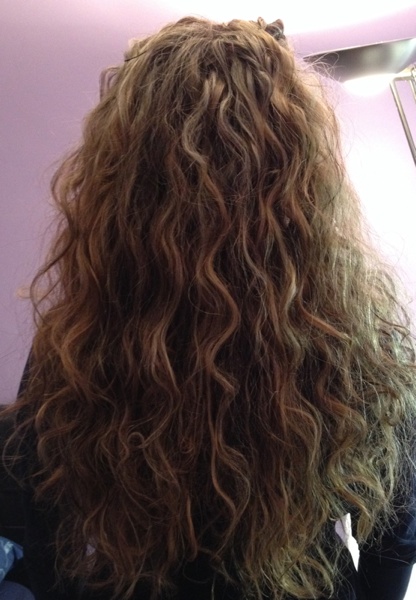 per prima cosa si lavano i capelli e si asciugano con il phon per pochi minuti, in modo che risultino ancora umidi. Dopodichè la parrucchiera mi ha applicato una schiuma per aiutare la definizione della messa piega, questo passaggio però non è fondamentale e volendo si può saltare.